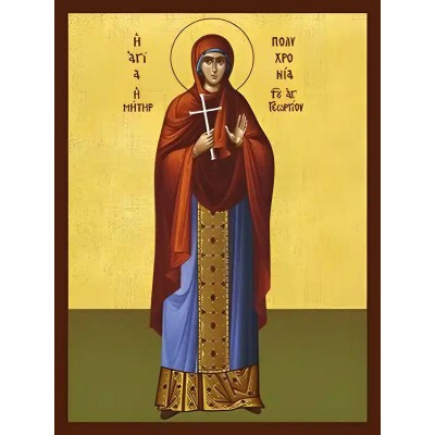 Κριτικάρετε το(τα): Εικόνα Ορθοδοξίας με περίγραμμα χρυσό σε ξύλο Φλαμουρίας με βάση Εικόνα ΑΓΙΑ ΠΟΛΥΧΡΟΝΙΑ, Η ΜΗΤΗΡ ΤΟΥ ΑΓΙΟΥ ΓΕΩΡΓΙΟΥ ΤΟΥ ΤΡΟΠΑΙΟΦΟΡΟΥ, ΟΛΟΣΩΜΗ Χειροποίητη Ελληνορθόδοξη εικόνα του Ιησού Χριστού, Κρεμαστή πλάκα βυζαντινής τέχνης, χριστιανική τέχνη Διάστασ