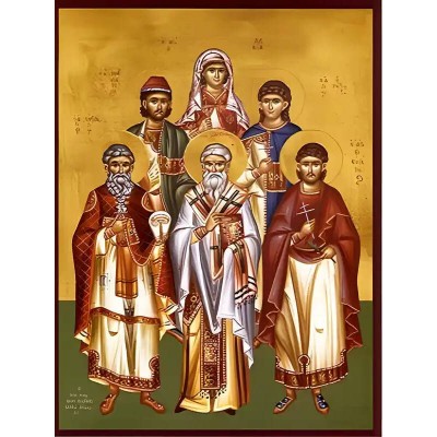 Εικόνα Ορθοδοξίας με περίγραμμα χρυσό σε ξύλο Φλαμουρίας με βάση Εικόνα ΑΓΙΟΙ ΕΥΣΤΡΑΤΙΟΣ, ΑΥΞΕΝΤΙΟΣ, ΕΥΓΕΝΙΟΣ, ΜΑΡΔΑΡΙΟΣ, ΟΡΕΣΤΗΣ, ΜΑΡΤΥΡΕΣ ΣΕΒΑΣΤΕΙΑΣ ΚΑΙ ΛΟΥΚΙΑ, ΠΑΡΘΕΝΟΜΑΡΤΥΣ ΣΥΡΑΚΟΥΣΩΝ, ΟΛΟΣΩΜΟΙ Χειροποίητη Ελληνορθόδοξη εικόνα του Ιησού Χριστού, Κρε