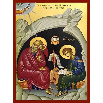 Όνομα Προϊόντος Εικόνα Ορθοδοξίας με περίγραμμα χρυσό σε ξύλο Φλαμουρίας με βάση Εικόνα ΑΓΙΟΣ ΑΠΟΣΤΟΛΟΣ ΚΑΙ ΕΥΑΓΓΕΛΙΣΤΗΣ ΙΩΑΝΝΗΣ Ο ΘΕΟΛΟΓΟΣ ΚΑΙ ΑΓΙΟΣ ΑΠΟΣΤΟΛΟΣ ΠΡΟΧΟΡΟΣ ΣΕ ΣΠΗΛΑΙΟ, ΟΛΟΣΩΜΟΙ Χειροποίητη Ελληνορθόδοξη εικόνα του Ιησού Χριστού, Κρεμαστή πλάκα βυζαντινής τ