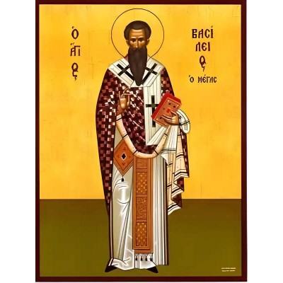 Όνομα Προϊόντος Εικόνα Ορθοδοξίας με περίγραμμα χρυσό σε ξύλο Φλαμουρίας με βάση Εικόνα ΑΓΙΟΣ ΒΑΣΙΛΕΙΟΣ Ο ΜΕΓΑΣ, ΑΡΧΙΕΠΙΣΚΟΠΟΣ ΚΑΙΣΑΡΕΙΑΣ, ΚΑΠΠΑΔΟΚΙΑ, ΟΛΟΣΩΜΟΣ Χειροποίητη Ελληνορθόδοξη εικόνα του Ιησού Χριστού, Κρεμαστή πλάκα βυζαντινής τέχνης, χριστιανική τέχνη Διάστ