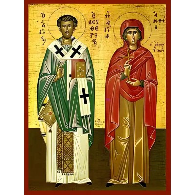 Κριτικάρετε το(τα): Εικόνα Ορθοδοξίας με περίγραμμα χρυσό σε ξύλο Φλαμουρίας με βάση Εικόνα ΑΓΙΟΣ ΕΛΕΥΘΕΡΙΟΣ, ΙΕΡΟΜΑΡΤΥΣ, ΕΠΙΣΚΟΠΟΣ ΙΛΛΥΡΙΚΟΥ ΚΑΙ Η ΜΗΤΗΡ ΑΥΤΟΥ ΑΓΙΑ ΑΝΘΙΑ ΜΑΡΤΥΣ, ΟΛΟΣΩΜΟΙ Χειροποίητη Ελληνορθόδοξη εικόνα του Ιησού Χριστού, Κρεμαστή πλάκα βυζαντινής τέχνης,