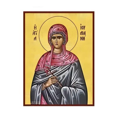 Βασικά Χαρακτηριστικά: - Σχέδιο: Κλασική βυζαντινή εικονογραφία με ζωηρό κόκκινο περίγραμμα - Υλικό: Ξύλο Μασίφ Φλαμουρία υψηλής αντοχής με προστατευτικό βερνίκι για ποιότητα που διαρκεί - Προέλευση: Χειροποίητο στην Ελλάδα - Σκοπός: Ιδανικό για γωνιές προσευχής, εκκλησίες, διακόσμηση σπιτιού ή ως δώρο με νόημα Διαθέσιμα μεγέθη: 10x7 cm (3,9 x 2,8 ίντσες) 15x11 cm (5,9 x 4,3 ίντσες) 21x15 cm (8,3 x 5,9 ίντσες) 26x20 cm (10,2 x 7,9 ίντσες) 40x30 cm (15,8 x 11,8 ίντσες) 45x35 cm (17,7 x 13,8 ίντσες) 50x40 cm (19,7 x 15,8 ίντσες)► Εικόνα της Αγίας Ιουλιανής ξύλινη.