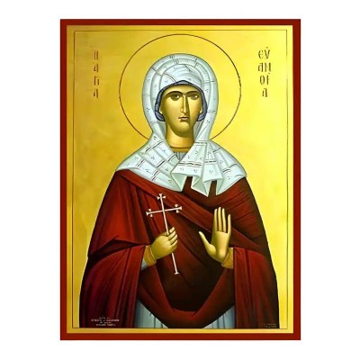 Βασικά Χαρακτηριστικά: - Σχέδιο: Κλασική βυζαντινή εικονογραφία με ζωηρό κόκκινο περίγραμμα - Υλικό: Ξύλο Μασίφ Φλαμουρία υψηλής αντοχής με προστατευτικό βερνίκι για ποιότητα που διαρκεί - Προέλευση: Χειροποίητο στην Ελλάδα - Σκοπός: Ιδανικό για γωνιές προσευχής, εκκλησίες, διακόσμηση σπιτιού ή ως δώρο με νόημα Διαθέσιμα μεγέθη: 10x7 cm (3,9 x 2,8 ίντσες) 15x11 cm (5,9 x 4,3 ίντσες) 21x15 cm (8,3 x 5,9 ίντσες) 26x20 cm (10,2 x 7,9 ίντσες) 40x30 cm (15,8 x 11,8 ίντσες) 45x35 cm (17,7 x 13,8 ίντσες) 50x40 cm (19,7 x 15,8 ίντσες)► Εικόνα της Αγίας Ευανθίας ξύλινη.