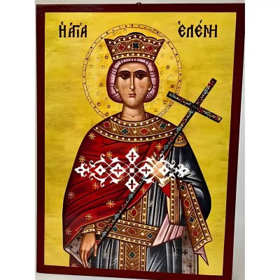 Βασικά Χαρακτηριστικά: - Σχέδιο: Κλασική βυζαντινή εικονογραφία με ζωηρό κόκκινο περίγραμμα - Υλικό: Ξύλο Μασίφ Φλαμουρία υψηλής αντοχής με προστατευτικό βερνίκι για ποιότητα που διαρκεί - Προέλευση: Χειροποίητο στην Ελλάδα - Σκοπός: Ιδανικό για γωνιές προσευχής, εκκλησίες, διακόσμηση σπιτιού ή ως δώρο με νόημα Διαθέσιμα μεγέθη: 10x7 cm (3,9 x 2,8 ίντσες) 15x11 cm (5,9 x 4,3 ίντσες) 21x15 cm (8,3 x 5,9 ίντσες) 26x20 cm (10,2 x 7,9 ίντσες) 40x30 cm (15,8 x 11,8 ίντσες) 45x35 cm (17,7 x 13,8 ίντσες) 50x40 cm (19,7 x 15,8 ίντσες)► Εικόνα της Αγίας Ελένης ξύλινη.  Χειροποίητη ξύλινη εικόνα, ειδικής επεξεργασίας  σε σκληρό Φλαμουριά Ξύλο Εικόνα Ορθόδοξης τέχνης, σκαλισμένη ή τυπωμένη σε ξύλο φλαμουριάς υψηλής ποιότητας. Η φυσική απαλότητα και ομοιομορφία του ξύλου τονίζει κάθε λεπτομέρεια του εικονίσματος, αναδεικνύοντας τη βαθιά πνευματικότητα και την ιερότητα της παράδοσης. Ιδανική για οικιακό εικονοστάσι, δώρο βάπτισης, γάμου ή αφιέρωμα σε ναό. Το ξύλο έχει υποστεί ειδική επεξεργασία γ