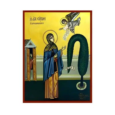 Βασικά Χαρακτηριστικά: - Σχέδιο: Κλασική βυζαντινή εικονογραφία με ζωηρό κόκκινο περίγραμμα - Υλικό: Ξύλο Μασίφ Φλαμουρία υψηλής αντοχής με προστατευτικό βερνίκι για ποιότητα που διαρκεί - Προέλευση: Χειροποίητο στην Ελλάδα - Σκοπός: Ιδανικό για γωνιές προσευχής, εκκλησίες, διακόσμηση σπιτιού ή ως δώρο με νόημα Διαθέσιμα μεγέθη: 10x7 cm (3,9 x 2,8 ίντσες) 15x11 cm (5,9 x 4,3 ίντσες) 21x15 cm (8,3 x 5,9 ίντσες) 26x20 cm (10,2 x 7,9 ίντσες) 40x30 cm (15,8 x 11,8 ίντσες) 45x35 cm (17,7 x 13,8 ίντσες) 50x40 cm (19,7 x 15,8 ίντσες)► Εικόνα της Αγίας Ειρήνης της Χρυσοβαλάντου, ξύλινη. Χειροποίητη ξύλινη εικόνα, ειδικής επεξεργασίας σε σκληρό Φλαμουριά Ξύλο Εικόνα Ορθόδοξης τέχνης, σκαλισμένη ή τυπωμένη σε ξύλο φλαμουριάς υψηλής ποιότητας. Η φυσική απαλότητα και ομοιομορφία του ξύλου τονίζει κάθε λεπτομέρεια του εικονίσματος, αναδεικνύοντας τη βαθιά πνευματικότητα και την ιερότητα της παράδοσης. Ιδανική για οικιακό εικονοστάσι, δώρο βάπτισης, γάμου ή αφιέρωμα σε ναό. Το ξύλο έχει υποστεί
