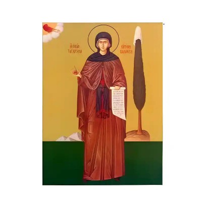 Βασικά Χαρακτηριστικά: - Σχέδιο: Κλασική βυζαντινή εικονογραφία με ζωηρό κόκκινο περίγραμμα - Υλικό: Ξύλο Μασίφ Φλαμουρία υψηλής αντοχής με προστατευτικό βερνίκι για ποιότητα που διαρκεί - Προέλευση: Χειροποίητο στην Ελλάδα - Σκοπός: Ιδανικό για γωνιές προσευχής, εκκλησίες, διακόσμηση σπιτιού ή ως δώρο με νόημα Διαθέσιμα μεγέθη: 10x7 cm (3,9 x 2,8 ίντσες) 15x11 cm (5,9 x 4,3 ίντσες) 21x15 cm (8,3 x 5,9 ίντσες) 26x20 cm (10,2 x 7,9 ίντσες) 40x30 cm (15,8 x 11,8 ίντσες) 45x35 cm (17,7 x 13,8 ίντσες) 50x40 cm (19,7 x 15,8 ίντσες)► Εικόνα της Αγίας Ειρήνης της Χρυσοβαλάντου, ξύλινη.  Χειροποίητη ξύλινη εικόνα, ειδικής επεξεργασίας  σε σκληρό Φλαμουριά Ξύλο Εικόνα Ορθόδοξης τέχνης, σκαλισμένη ή τυπωμένη σε ξύλο φλαμουριάς υψηλής ποιότητας. Η φυσική απαλότητα και ομοιομορφία του ξύλου τονίζει κάθε λεπτομέρεια του εικονίσματος, αναδεικνύοντας τη βαθιά πνευματικότητα και την ιερότητα της παράδοσης. Ιδανική για οικιακό εικονοστάσι, δώρο βάπτισης, γάμου ή αφιέρωμα σε ναό. Το ξύλο έχει υποστεί