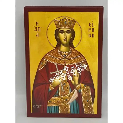Βασικά Χαρακτηριστικά: - Σχέδιο: Κλασική βυζαντινή εικονογραφία με ζωηρό κόκκινο περίγραμμα - Υλικό: Ξύλο Μασίφ Φλαμουρία υψηλής αντοχής με προστατευτικό βερνίκι για ποιότητα που διαρκεί - Προέλευση: Χειροποίητο στην Ελλάδα - Σκοπός: Ιδανικό για γωνιές προσευχής, εκκλησίες, διακόσμηση σπιτιού ή ως δώρο με νόημα Διαθέσιμα μεγέθη: 10x7 cm (3,9 x 2,8 ίντσες) 15x11 cm (5,9 x 4,3 ίντσες) 21x15 cm (8,3 x 5,9 ίντσες) 26x20 cm (10,2 x 7,9 ίντσες) 40x30 cm (15,8 x 11,8 ίντσες) 45x35 cm (17,7 x 13,8 ίντσες) 50x40 cm (19,7 x 15,8 ίντσες)► Εικόνα της Αγίας Ειρήνης ξύλινη.  Χειροποίητη ξύλινη εικόνα, ειδικής επεξεργασίας  σε σκληρό Φλαμουριά Ξύλο Εικόνα Ορθόδοξης τέχνης, σκαλισμένη ή τυπωμένη σε ξύλο φλαμουριάς υψηλής ποιότητας. Η φυσική απαλότητα και ομοιομορφία του ξύλου τονίζει κάθε λεπτομέρεια του εικονίσματος, αναδεικνύοντας τη βαθιά πνευματικότητα και την ιερότητα της παράδοσης. Ιδανική για οικιακό εικονοστάσι, δώρο βάπτισης, γάμου ή αφιέρωμα σε ναό. Το ξύλο έχει υποστεί ειδική επεξεργασία