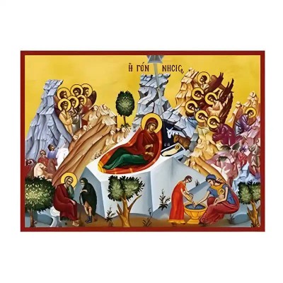 Βασικά Χαρακτηριστικά: - Σχέδιο: Κλασική βυζαντινή εικονογραφία με ζωηρό κόκκινο περίγραμμα - Υλικό: Ξύλο Μασίφ Φλαμουρία υψηλής αντοχής με προστατευτικό βερνίκι για ποιότητα που διαρκεί - Προέλευση: Χειροποίητο στην Ελλάδα - Σκοπός: Ιδανικό για γωνιές προσευχής, εκκλησίες, διακόσμηση σπιτιού ή ως δώρο με νόημα Διαθέσιμα μεγέθη: 10x7 cm (3,9 x 2,8 ίντσες) 15x11 cm (5,9 x 4,3 ίντσες) 21x15 cm (8,3 x 5,9 ίντσες) 26x20 cm (10,2 x 7,9 ίντσες) 40x30 cm (15,8 x 11,8 ίντσες) 45x35 cm (17,7 x 13,8 ίντσες) 50x40 cm (19,7 x 15,8 ίντσες)► Εικόνα της Γέννησης του Χριστού ξύλινη.  Χειροποίητη ξύλινη εικόνα, ειδικής επεξεργασίας  σε σκληρό Φλαμουριά Ξύλο Εικόνα Ορθόδοξης τέχνης, σκαλισμένη ή τυπωμένη σε ξύλο φλαμουριάς υψηλής ποιότητας. Η φυσική απαλότητα και ομοιομορφία του ξύλου τονίζει κάθε λεπτομέρεια του εικονίσματος, αναδεικνύοντας τη βαθιά πνευματικότητα και την ιερότητα της παράδοσης. Ιδανική για οικιακό εικονοστάσι, δώρο βάπτισης, γάμου ή αφιέρωμα σε ναό. Το ξύλο έχει υποστεί ειδική επεξε