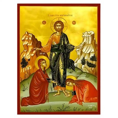 Βασικά Χαρακτηριστικά: - Σχέδιο: Κλασική βυζαντινή εικονογραφία με ζωηρό κόκκινο περίγραμμα - Υλικό: Ξύλο Μασίφ Φλαμουρία υψηλής αντοχής με προστατευτικό βερνίκι για ποιότητα που διαρκεί - Προέλευση: Χειροποίητο στην Ελλάδα - Σκοπός: Ιδανικό για γωνιές προσευχής, εκκλησίες, διακόσμηση σπιτιού ή ως δώρο με νόημα Διαθέσιμα μεγέθη: 10x7 cm (3,9 x 2,8 ίντσες) 15x11 cm (5,9 x 4,3 ίντσες) 21x15 cm (8,3 x 5,9 ίντσες) 26x20 cm (10,2 x 7,9 ίντσες) 40x30 cm (15,8 x 11,8 ίντσες) 45x35 cm (17,7 x 13,8 ίντσες) 50x40 cm (19,7 x 15,8 ίντσες)► Εικόνα του Χαιρετισμού των Μυροφόρων, ξύλινη. Χειροποίητη ξύλινη εικόνα, ειδικής επεξεργασίας σε σκληρό Φλαμουριά Ξύλο Εικόνα Ορθόδοξης τέχνης, σκαλισμένη ή τυπωμένη σε ξύλο φλαμουριάς υψηλής ποιότητας. Η φυσική απαλότητα και ομοιομορφία του ξύλου τονίζει κάθε λεπτομέρεια του εικονίσματος, αναδεικνύοντας τη βαθιά πνευματικότητα και την ιερότητα της παράδοσης. Ιδανική για οικιακό εικονοστάσι, δώρο βάπτισης, γάμου ή αφιέρωμα σε ναό. Το ξύλο έχει υποστεί ειδική