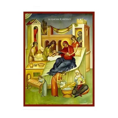 Βασικά Χαρακτηριστικά: - Σχέδιο: Κλασική βυζαντινή εικονογραφία με ζωηρό κόκκινο περίγραμμα - Υλικό: Ξύλο Μασίφ Φλαμουρία υψηλής αντοχής με προστατευτικό βερνίκι για ποιότητα που διαρκεί - Προέλευση: Χειροποίητο στην Ελλάδα - Σκοπός: Ιδανικό για γωνιές προσευχής, εκκλησίες, διακόσμηση σπιτιού ή ως δώρο με νόημα Διαθέσιμα μεγέθη: 10x7 cm (3,9 x 2,8 ίντσες) 15x11 cm (5,9 x 4,3 ίντσες) 21x15 cm (8,3 x 5,9 ίντσες) 26x20 cm (10,2 x 7,9 ίντσες) 40x30 cm (15,8 x 11,8 ίντσες) 45x35 cm (17,7 x 13,8 ίντσες) 50x40 cm (19,7 x 15,8 ίντσες)► Εικόνα της Γέννησης της Υπεραγίας Θεοτόκου, ξύλινη.  Χειροποίητη ξύλινη εικόνα, ειδικής επεξεργασίας  σε σκληρό Φλαμουριά Ξύλο Εικόνα Ορθόδοξης τέχνης, σκαλισμένη ή τυπωμένη σε ξύλο φλαμουριάς υψηλής ποιότητας. Η φυσική απαλότητα και ομοιομορφία του ξύλου τονίζει κάθε λεπτομέρεια του εικονίσματος, αναδεικνύοντας τη βαθιά πνευματικότητα και την ιερότητα της παράδοσης. Ιδανική για οικιακό εικονοστάσι, δώρο βάπτισης, γάμου ή αφιέρωμα σε ναό. Το ξύλο έχει υποστεί