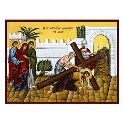 Βασικά Χαρακτηριστικά: - Σχέδιο: Κλασική βυζαντινή εικονογραφία με ζωηρό κόκκινο περίγραμμα - Υλικό: Ξύλο Μασίφ Φλαμουρία υψηλής αντοχής με προστατευτικό βερνίκι για ποιότητα που διαρκεί - Προέλευση: Χειροποίητο στην Ελλάδα - Σκοπός: Ιδανικό για γωνιές προσευχής, εκκλησίες, διακόσμηση σπιτιού ή ως δώρο με νόημα Διαθέσιμα μεγέθη: 10x7 cm (3,9 x 2,8 ίντσες) 15x11 cm (5,9 x 4,3 ίντσες) 21x15 cm (8,3 x 5,9 ίντσες) 26x20 cm (10,2 x 7,9 ίντσες) 40x30 cm (15,8 x 11,8 ίντσες) 45x35 cm (17,7 x 13,8 ίντσες) 50x40 cm (19,7 x 15,8 ίντσες)► Εικόνα της Ανάβασης του Κυρίου στο Γολγοθά, ξύλινη. Χειροποίητη ξύλινη εικόνα, ειδικής επεξεργασίας σε σκληρό Φλαμουριά Ξύλο Εικόνα Ορθόδοξης τέχνης, σκαλισμένη ή τυπωμένη σε ξύλο φλαμουριάς υψηλής ποιότητας. Η φυσική απαλότητα και ομοιομορφία του ξύλου τονίζει κάθε λεπτομέρεια του εικονίσματος, αναδεικνύοντας τη βαθιά πνευματικότητα και την ιερότητα της παράδοσης. Ιδανική για οικιακό εικονοστάσι, δώρο βάπτισης, γάμου ή αφιέρωμα σε ναό. Το ξύλο έχει υποστεί