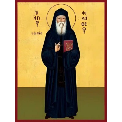 Σετ των 2 Εικόνα Ορθοδοξίας με περίγραμμα χρυσό σε ξύλο Φλαμουρίας με βάση Εικόνα ΑΓΙΟΣ ΦΙΛΟΘΕΟΣ ΖΕΡΒΑΚΟΣ, Ο ΕΝ ΠΑΡΩ, ΟΛΟΣΩΜΟΣ Χειροποίητη Ελληνορθόδοξη εικόνα του Ιησού Χριστού, Κρεμαστή πλάκα βυζαντινής τέχνης, χριστιανική τέχνη Διάσταση 15x11 cm (5,9x4,3 ίντσες) INTRAEK-337757864545
