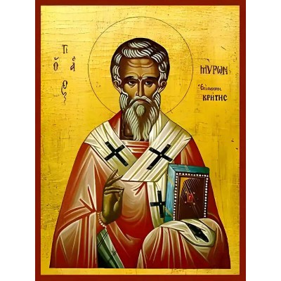 Σετ των 2 Εικόνα Ορθοδοξίας με περίγραμμα χρυσό σε ξύλο Φλαμουρίας με βάση Εικόνα ΑΓΙΟΣ ΜΥΡΩΝ, ΕΠΙΣΚΟΠΟΣ ΚΡΗΤΗΣ Χειροποίητη Ελληνορθόδοξη εικόνα του Ιησού Χριστού, Κρεμαστή πλάκα βυζαντινής τέχνης, χριστιανική τέχνη Διάσταση 15x11 cm (5,9x4,3 ίντσες) INTRAEK-337757864711