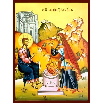 | Όνομα Προϊόντος | Σετ των 2 Εικόνα Ορθοδοξίας με περίγραμμα χρυσό σε ξύλο Φλαμουρίας με βάση Εικόνα ΧΡΙΣΤΟΣ ΛΑΛΩΝ ΤΗ ΣΑΜΑΡΕΙΤΙΔΙ Χειροποίητη Ελληνορθόδοξη εικόνα του Ιησού Χριστού, Κρεμαστή πλάκα βυζαντινής τέχνης, χριστιανική τέχνη Διάσταση 15x11 cm (5,9x4,3 ίντσες) IN |