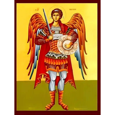 Όνομα Προϊόντος Σετ των 2 Εικόνα Ορθοδοξίας με περίγραμμα χρυσό σε ξύλο Φλαμουρίας με βάση Εικόνα ΑΡΧΑΓΓΕΛΟΣ ΜΙΧΑΗΛ, ΟΛΟΣΩΜΟΣ Χειροποίητη Ελληνορθόδοξη εικόνα του Ιησού Χριστού, Κρεμαστή πλάκα βυζαντινής τέχνης, χριστιανική τέχνη Διάσταση 15x11 cm (5,9x4,3 ίντσες) INT