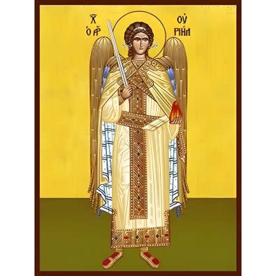 Σετ των 2 Εικόνα Ορθοδοξίας με περίγραμμα χρυσό σε ξύλο Φλαμουρίας με βάση Εικόνα ΑΡΧΑΓΓΕΛΟΣ ΟΥΡΙΗΛ, ΟΛΟΣΩΜΟΣ Χειροποίητη Ελληνορθόδοξη εικόνα του Ιησού Χριστού, Κρεμαστή πλάκα βυζαντινής τέχνης, χριστιανική τέχνη Διάσταση 15x11 cm (5,9x4,3 ίντσες) INT
