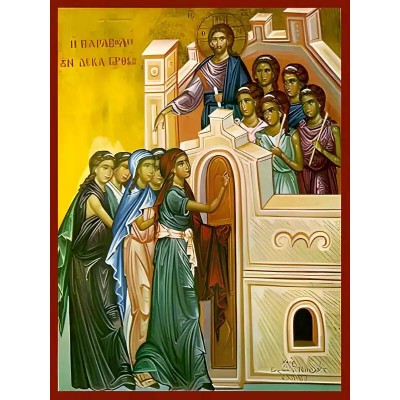 Κριτικάρετε το(τα): Σετ των 2 Εικόνα Ορθοδοξίας με περίγραμμα χρυσό σε ξύλο Φλαμουρίας με βάση Εικόνα ΠΑΡΑΒΟΛΗ ΤΩΝ ΔΕΚΑ ΠΑΡΘΕΝΩΝ Χειροποίητη Ελληνορθόδοξη εικόνα του Ιησού Χριστού, Κρεμαστή πλάκα βυζαντινής τέχνης, χριστιανική τέχνη Διάσταση 15x11 cm (5,9x4,3 ίντσες) INTR