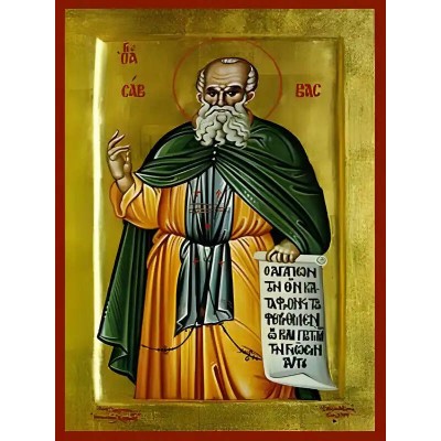 Σετ των 2 Εικόνα Ορθοδοξίας με περίγραμμα χρυσό σε ξύλο Φλαμουρίας με βάση Εικόνα ΑΓΙΟΣ ΣΑΒΒΑΣ, Ο ΗΓΙΑΣΜΕΝΟΣ Χειροποίητη Ελληνορθόδοξη εικόνα του Ιησού Χριστού, Κρεμαστή πλάκα βυζαντινής τέχνης, χριστιανική τέχνη Διάσταση 15x11 cm (5,9x4,3 ίντσες) INTRAEK-337757864608