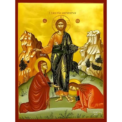 | Όνομα Προϊόντος | Σετ των 2 Εικόνα Ορθοδοξίας με περίγραμμα χρυσό σε ξύλο Φλαμουρίας με βάση Εικόνα ΤΟ ΧΑΙΡΕ ΤΩΝ ΜΥΡΟΦΟΡΩΝ Χειροποίητη Ελληνορθόδοξη εικόνα του Ιησού Χριστού, Κρεμαστή πλάκα βυζαντινής τέχνης, χριστιανική τέχνη Διάσταση 15x11 cm (5,9x4,3 ίντσες) INTRAEK- |