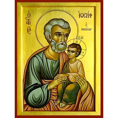 Σετ των 2 Εικόνα Ορθοδοξίας με περίγραμμα χρυσό σε ξύλο Φλαμουρίας με βάση Εικόνα ΑΓΙΟΣ ΙΩΣΗΦ, Ο ΜΝΗΣΤΩΡ Χειροποίητη Ελληνορθόδοξη εικόνα του Ιησού Χριστού, Κρεμαστή πλάκα βυζαντινής τέχνης, χριστιανική τέχνη Διάσταση 15x11 cm (5,9x4,3 ίντσες) INTRAEK-