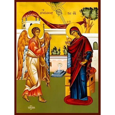 Όνομα Προϊόντος Σετ των 2 Εικόνα Ορθοδοξίας με περίγραμμα χρυσό σε ξύλο Φλαμουρίας με βάση Εικόνα ΕΥΑΓΓΕΛΙΣΜΟΣ ΘΕΟΤΟΚΟΥ Χειροποίητη Ελληνορθόδοξη εικόνα του Ιησού Χριστού, Κρεμαστή πλάκα βυζαντινής τέχνης, χριστιανική τέχνη Διάσταση 15x11 cm (5,9x4,3 ίντσες) INTRAEK-3
