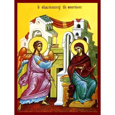 Όνομα Προϊόντος Σετ των 2 Εικόνα Ορθοδοξίας με περίγραμμα χρυσό σε ξύλο Φλαμουρίας με βάση Εικόνα ΕΥΑΓΓΕΛΙΣΜΟΣ ΘΕΟΤΟΚΟΥ Χειροποίητη Ελληνορθόδοξη εικόνα του Ιησού Χριστού, Κρεμαστή πλάκα βυζαντινής τέχνης, χριστιανική τέχνη Διάσταση 15x11 cm (5,9x4,3 ίντσες) INTRAEK-3