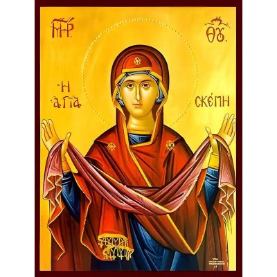 Σετ των 2 Εικόνα Ορθοδοξίας με περίγραμμα χρυσό σε ξύλο Φλαμουρίας με βάση Εικόνα ΠΑΝΑΓΙΑ, Η ΑΓΙΑ ΣΚΕΠΗ Χειροποίητη Ελληνορθόδοξη εικόνα του Ιησού Χριστού, Κρεμαστή πλάκα βυζαντινής τέχνης, χριστιανική τέχνη Διάσταση 15x11 cm (5,9x4,3 ίντσες) INTRAEK-3