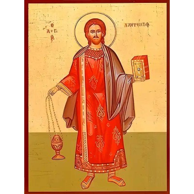 Όνομα Προϊόντος Σετ των 2 Εικόνα Ορθοδοξίας με περίγραμμα χρυσό σε ξύλο Φλαμουρίας με βάση Εικόνα ΑΓΙΟΣ ΛΑΥΡΕΝΤΙΟΣ, ΑΡΧΙΔΙΑΚΟΝΟΣ, ΟΛΟΣΩΜΟΣ Χειροποίητη Ελληνορθόδοξη εικόνα του Ιησού Χριστού, Κρεμαστή πλάκα βυζαντινής τέχνης, χριστιανική τέχνη Διάσταση 15x11 cm (5,9x4,3