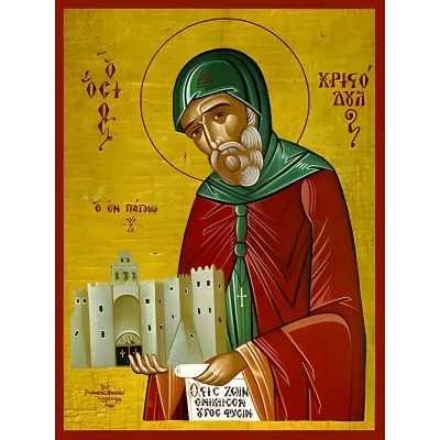 Κριτικάρετε το(τα): Σετ των 2 Εικόνα Ορθοδοξίας με περίγραμμα χρυσό σε ξύλο Φλαμουρίας με βάση Εικόνα ΑΓΙΟΣ ΧΡΙΣΤΟΔΟΥΛΟΣ, Ο ΕΝ ΠΑΤΜΩ Χειροποίητη Ελληνορθόδοξη εικόνα του Ιησού Χριστού, Κρεμαστή πλάκα βυζαντινής τέχνης, χριστιανική τέχνη Διάσταση 15x11 cm (5,9x4,3 ίντσες)