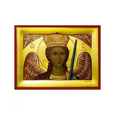 Σετ των 2 Εικόνα Ορθοδοξίας με περίγραμμα χρυσό σε ξύλο Φλαμουρίας με βάση Εικόνα ΑΡΧΑΓΓΕΛΟΣ ΜΙΧΑΗΛ ΜΑΝΤΑΜΑΔΟΥ, ΠΡΟΤΟΜΗ Χειροποίητη Ελληνορθόδοξη εικόνα του Ιησού Χριστού, Κρεμαστή πλάκα βυζαντινής τέχνης, χριστιανική τέχνη Διάσταση 15x11 cm (5,9x4,3 ίντσες) INTRAEK-337757864488