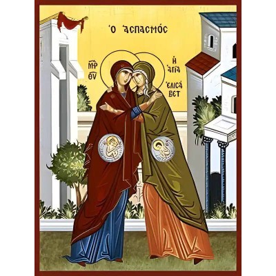Κριτικάρετε το(τα): Σετ των 2 Εικόνα Ορθοδοξίας με περίγραμμα χρυσό σε ξύλο Φλαμουρίας με βάση Εικόνα ΘΕΟΤΟΚΟΣ ΚΑΙ ΑΓΙΑ ΕΛΙΣΑΒΕΤ, Ο ΑΣΠΑΣΜΟΣ Χειροποίητη Ελληνορθόδοξη εικόνα του Ιησού Χριστού, Κρεμαστή πλάκα βυζαντινής τέχνης, χριστιανική τέχνη Διάσταση 15x11 cm (5,9x4,3 ί