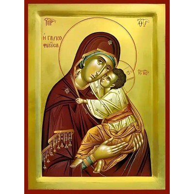Σετ των 2 Εικόνα Ορθοδοξίας με περίγραμμα χρυσό σε ξύλο Φλαμουρίας με βάση Εικόνα ΠΑΝΑΓΙΑ ΜΕ ΧΡΙΣΤΟ, ΓΛΥΚΟΦΙΛΟΥΣΑ Χειροποίητη Ελληνορθόδοξη εικόνα του Ιησού Χριστού, Κρεμαστή πλάκα βυζαντινής τέχνης, χριστιανική τέχνη Διάσταση 15x11 cm (5,9x4,3 ίντσες)