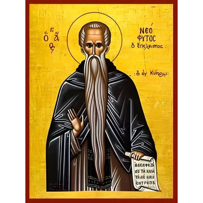 Σετ των 2 Εικόνα Ορθοδοξίας με περίγραμμα χρυσό σε ξύλο Φλαμουρίας με βάση Εικόνα ΑΓΙΟΣ ΝΕΟΦΥΤΟΣ, Ο ΕΓΚΛΕΙΣΤΟΣ, Ο ΕΝ ΚΥΠΡΩ Χειροποίητη Ελληνορθόδοξη εικόνα του Ιησού Χριστού, Κρεμαστή πλάκα βυζαντινής τέχνης, χριστιανική τέχνη Διάσταση 15x11 cm (5,9x4,3 ίντσες) INTRAEK-337757864696