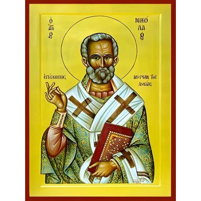 Κριτικάρετε το(τα): Σετ των 2 Εικόνα Ορθοδοξίας με περίγραμμα χρυσό σε ξύλο Φλαμουρίας με βάση Εικόνα ΑΓΙΟΣ ΝΙΚΟΛΑΟΣ, ΑΡΧΙΕΠΙΣΚΟΠΟΣ ΜΥΡΩΝ ΛΥΚΙΑΣ Χειροποίητη Ελληνορθόδοξη εικόνα του Ιησού Χριστού, Κρεμαστή πλάκα βυζαντινής τέχνης, χριστιανική τέχνη Διάσταση 15x11 cm (5,9x4