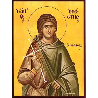 Κριτικάρετε το(τα): Σετ των 2 Εικόνα Ορθοδοξίας με περίγραμμα χρυσό σε ξύλο Φλαμουρίας με βάση Εικόνα ΑΓΙΟΣ ΟΡΕΣΤΗΣ, ΜΑΡΤΥΣ, ΚΑΠΠΑΔΟΚΙΑΣ Χειροποίητη Ελληνορθόδοξη εικόνα του Ιησού Χριστού, Κρεμαστή πλάκα βυζαντινής τέχνης, χριστιανική τέχνη Διάσταση 15x11 cm (5,9x4,3 ίντσε