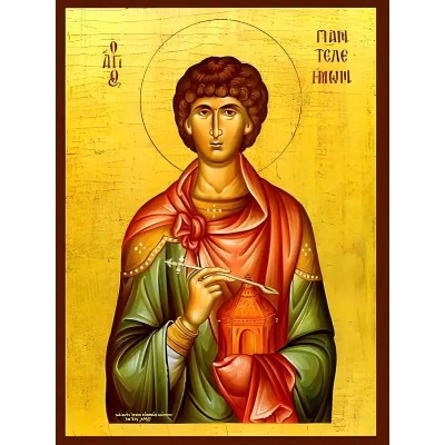 Όνομα Προϊόντος Σετ των 2 Εικόνα Ορθοδοξίας με περίγραμμα χρυσό σε ξύλο Φλαμουρίας με βάση Εικόνα ΑΓΙΟΣ ΠΑΝΤΕΛΕΗΜΩΝ, Ο ΜΕΓΑΛΟΜΑΡΤΥΣ Χειροποίητη Ελληνορθόδοξη εικόνα του Ιησού Χριστού, Κρεμαστή πλάκα βυζαντινής τέχνης, χριστιανική τέχνη Διάσταση 15x11 cm (5,9x4,3 ίντσες