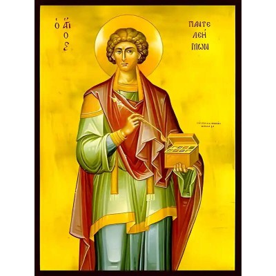 Όνομα Προϊόντος Σετ των 2 Εικόνα Ορθοδοξίας με περίγραμμα χρυσό σε ξύλο Φλαμουρίας με βάση Εικόνα ΑΓΙΟΣ ΠΑΝΤΕΛΕΗΜΩΝ, Ο ΜΕΓΑΛΟΜΑΡΤΥΣ Χειροποίητη Ελληνορθόδοξη εικόνα του Ιησού Χριστού, Κρεμαστή πλάκα βυζαντινής τέχνης, χριστιανική τέχνη Διάσταση 15x11 cm (5,9x4,3 ίντσες