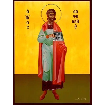 Κριτικάρετε το(τα): Σετ των 2 Εικόνα Ορθοδοξίας με περίγραμμα χρυσό σε ξύλο Φλαμουρίας με βάση Εικόνα ΑΓΙΟΣ ΣΟΦΟΚΛΗΣ, ΜΑΡΤΥΣ, ΟΛΟΣΩΜΟΣ Χειροποίητη Ελληνορθόδοξη εικόνα του Ιησού Χριστού, Κρεμαστή πλάκα βυζαντινής τέχνης, χριστιανική τέχνη Διάσταση 15x11 cm (5,9x4,3 ίντσες)