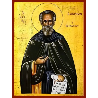 Σετ των 2 Εικόνα Ορθοδοξίας με περίγραμμα χρυσό σε ξύλο Φλαμουρίας με βάση Εικόνα ΑΓΙΟΣ ΣΑΜΨΩΝ, Ο ΞΕΝΟΔΟΧΟΣ, ΚΩΝ/ΠΟΛΕΩΣ Χειροποίητη Ελληνορθόδοξη εικόνα του Ιησού Χριστού, Κρεμαστή πλάκα βυζαντινής τέχνης, χριστιανική τέχνη Διάσταση 15x11 cm (5,9x4,3 ίν