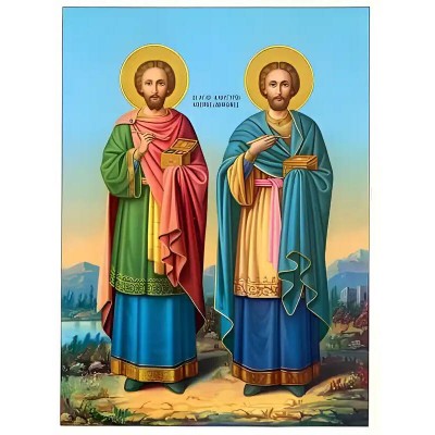 | Όνομα Προϊόντος | Σετ των 2 Εικόνα Ορθοδοξίας με περίγραμμα χρυσό σε ξύλο Φλαμουρίας με βάση Εικόνα ΑΓΙΟΙ ΑΝΑΡΓΥΡΟΙ ΚΟΣΜΑΣ ΚΑΙ ΔΑΜΙΑΝΟΣ, ΟΛΟΣΩΜΟΙ Χειροποίητη Ελληνορθόδοξη εικόνα του Ιησού Χριστού, Κρεμαστή πλάκα βυζαντινής τέχνης, χριστιανική τέχνη Διάσταση 15x11 cm (5, |