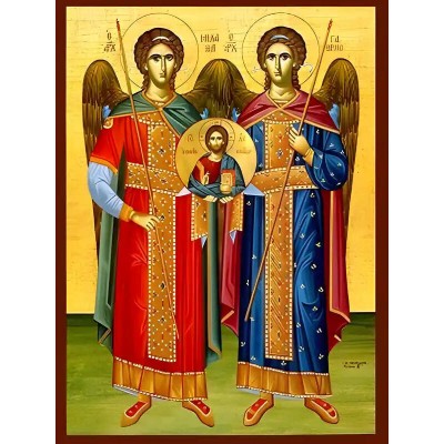 Κριτικάρετε το(τα): Σετ των 2 Εικόνα Ορθοδοξίας με περίγραμμα χρυσό σε ξύλο Φλαμουρίας με βάση Εικόνα ΣΥΝΑΞΙΣ ΑΡΧΑΓΓΕΛΩΝ ΜΙΧΑΗΛ ΚΑΙ ΓΑΒΡΙΗΛ, ΟΛΟΣΩΜΟΙ Χειροποίητη Ελληνορθόδοξη εικόνα του Ιησού Χριστού, Κρεμαστή πλάκα βυζαντινής τέχνης, χριστιανική τέχνη Διάσταση 15x11 cm (