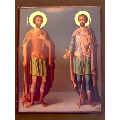 | Όνομα Προϊόντος | Σετ των 2 Εικόνα Ορθοδοξίας με περίγραμμα χρυσό σε ξύλο Φλαμουρίας με βάση Εικόνα ΑΓΙΟΙ ΘΕΟΔΩΡΟΙ ΜΕΓΑΛΟΜΑΡΤΥΡΕΣ ΤΗΡΩΝ ΚΑΙ ΣΤΡΑΤΗΛΑΤΗΣ, ΟΛΟΣΩΜΟΙ Χειροποίητη Ελληνορθόδοξη εικόνα του Ιησού Χριστού, Κρεμαστή πλάκα βυζαντινής τέχνης, χριστιανική τέχνη Διάστ |