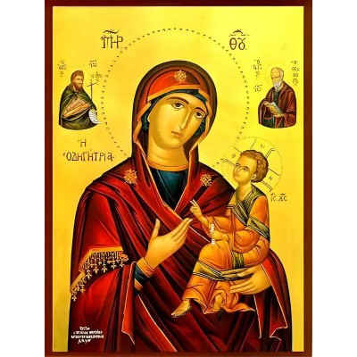 Σετ των 2 Εικόνα Ορθοδοξίας με περίγραμμα χρυσό σε ξύλο Φλαμουρίας με βάση Εικόνα ΠΑΝΑΓΙΑ ΜΕ ΧΡΙΣΤΟ, ΟΔΗΓΗΤΡΙΑ ΜΕ ΔΕΟΜΕΝΟΥΣ ΑΓΙΟΥΣ ΙΩΑΝΝΗ ΠΡΟΔΡΟΜΟ ΚΑΙ ΙΩΑΝΝΗ ΘΕΟΛΟΓΟ Χειροποίητη Ελληνορθόδοξη εικόνα του Ιησού Χριστού, Κρεμαστή πλάκα βυζαντινής τέχνης, χ