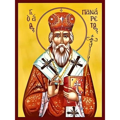 Σετ των 2 Εικόνα Ορθοδοξίας με περίγραμμα χρυσό σε ξύλο Φλαμουρίας με βάση Εικόνα ΑΓΙΟΣ ΠΑΝΑΡΕΤΟΣ Ο ΘΑΥΜΑΤΟΥΡΓΟΣ, ΑΡΧΙΕΠΙΣΚΟΠΟΣ ΠΑΦΟΥ, ΚΥΠΡΟΣ Χειροποίητη Ελληνορθόδοξη εικόνα του Ιησού Χριστού, Κρεμαστή πλάκα βυζαντινής τέχνης, χριστιανική τέχνη Διάσταση 15x11 cm (5,9x4,3 ίντσες) INTRAEK-337757864638