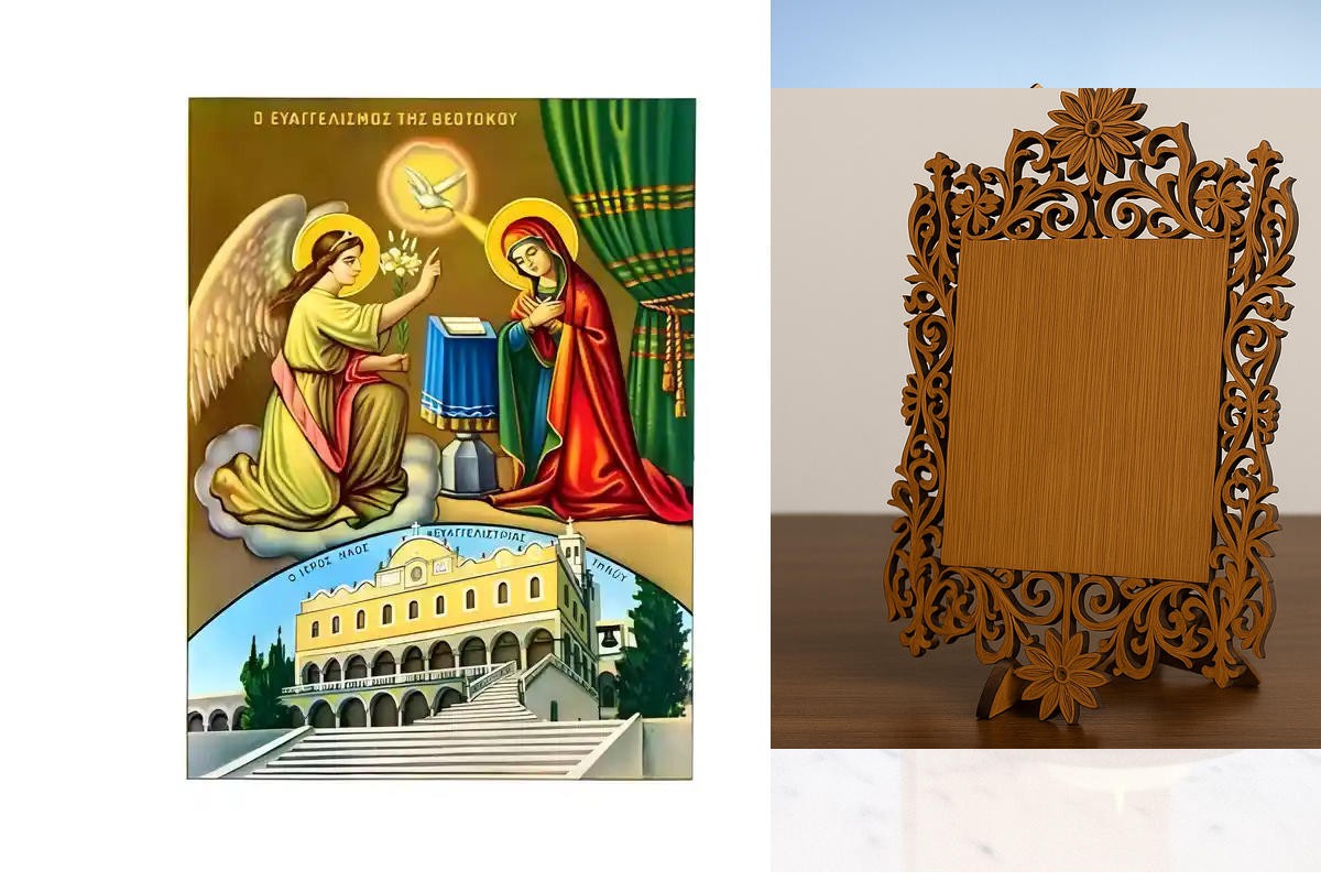 Βασικά Χαρακτηριστικά: - Σχέδιο: Κλασική βυζαντινή εικονογραφία με ζωηρό κόκκινο περίγραμμα - Υλικό: Ξύλο Μασίφ Φλαμουρία υψηλής αντοχής με προστατευτικό βερνίκι για ποιότητα που διαρκεί - Προέλευση: Χειροποίητο στην Ελλάδα - Σκοπός: Ιδανικό για γωνιές προσευχής, εκκλησίες, διακόσμηση σπιτιού ή ως δώρο με νόημα Διαθέσιμα μεγέθη: 10x7 cm (3,9 x 2,8 ίντσες) 15x11 cm (5,9 x 4,3 ίντσες) 21x15 cm (8,3 x 5,9 ίντσες) 26x20 cm (10,2 x 7,9 ίντσες) 40x30 cm (15,8 x 11,8 ίντσες) 45x35 cm (17,7 x 13,8 ίντσες) 50x40 cm (19,7 x 15,8 ίντσες)► Εικόνα του Ευαγγελισμού της Θεοτόκου , ξύλινη.  Χειροποίητη ξύλινη εικόνα, ειδικής επεξεργασίας σε σκληρό Φλαμουριά Ξύλο Εικόνα Ορθόδοξης τέχνης, σκαλισμένη ή τυπωμένη σε ξύλο φλαμουριάς υψηλής ποιότητας. Η φυσική απαλότητα και ομοιομορφία του ξύλου τονίζει κάθε λεπτομέρεια του εικονίσματος, αναδεικνύοντας τη βαθιά πνευματικότητα και την ιερότητα της παράδοσης. Ιδανική για οικιακό εικονοστάσι, δώρο βάπτισης, γάμου ή αφιέρωμα σε ναό. Το ξύλο έχει υποστεί ειδική