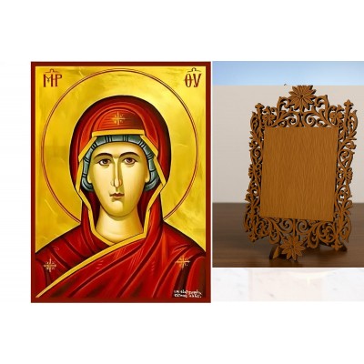 | Όνομα Προϊόντος | Σετ των 2 Εικόνα Ορθοδοξίας Δαντέλα μαζι με Βάση σε 8 χρώματα με περίγραμμα χρυσό σε ξύλο Plywood (Πλακάζ) με βάση Εικόνα Παναγία - Προτομή Χειροποίητη Ελληνορθόδοξη , Κρεμαστή πλάκα βυζαντινής τέχνης, χριστιανική τέχνη Διάσταση 10x7 cm (3,9 x 2,8 ίν |