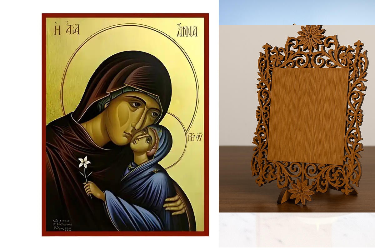 | Όνομα Προϊόντος | Σετ των 2 Εικόνα Ορθοδοξίας Δαντέλα μαζι με Βάση σε 8 χρώματα με περίγραμμα χρυσό σε ξύλο Plywood (Πλακάζ) με βάση Εικόνα Αγία Άννα με Παναγία Χειροποίητη Ελληνορθόδοξη , Κρεμαστή πλάκα βυζαντινής τέχνης, χριστιανική τέχνη Διάσταση 10x7 cm (3,9 x 2,8 |