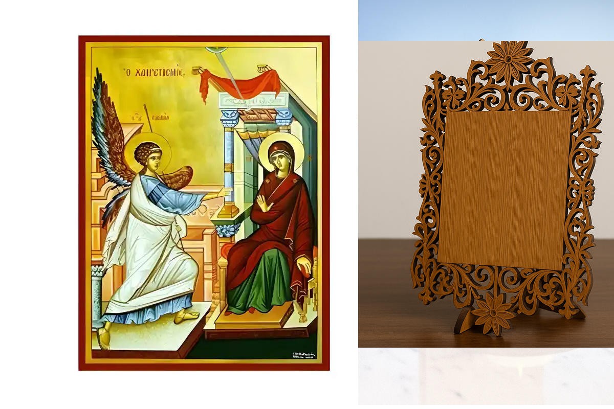 | Όνομα Προϊόντος | Σετ των 2 Εικόνα Ορθοδοξίας Δαντέλα μαζι με Βάση σε 8 χρώματα με περίγραμμα χρυσό σε ξύλο Plywood (Πλακάζ) με βάση Εικόνα Ευαγγελισμός της Θεοτόκου, Χαιρετισμός Χειροποίητη Ελληνορθόδοξη , Κρεμαστή πλάκα βυζαντινής τέχνης, χριστιανική τέχνη Διάσταση |