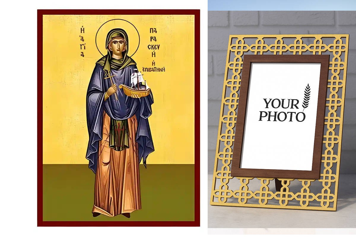 Βασικά Χαρακτηριστικά: - Σχέδιο: Κλασική βυζαντινή εικονογραφία με ζωηρό κόκκινο περίγραμμα - Υλικό: Ξύλο Μασίφ Φλαμουρία υψηλής αντοχής με προστατευτικό βερνίκι για ποιότητα που διαρκεί - Προέλευση: Χειροποίητο στην Ελλάδα - Σκοπός: Ιδανικό για γωνιές προσευχής, εκκλησίες, διακόσμηση σπιτιού ή ως δώρο με νόημα Διαθέσιμα μεγέθη: 10x7 cm (3,9 x 2,8 ίντσες) 15x11 cm (5,9 x 4,3 ίντσες) 21x15 cm (8,3 x 5,9 ίντσες) 26x20 cm (10,2 x 7,9 ίντσες) 40x30 cm (15,8 x 11,8 ίντσες) 45x35 cm (17,7 x 13,8 ίντσες) 50x40 cm (19,7 x 15,8 ίντσες)► Εικόνα της Αγίας Παρασκευής της Επιβατηνής, ξύλινη.  Χειροποίητη ξύλινη εικόνα, ειδικής επεξεργασίας  σε σκληρό Φλαμουριά Ξύλο Εικόνα Ορθόδοξης τέχνης, σκαλισμένη ή τυπωμένη σε ξύλο φλαμουριάς υψηλής ποιότητας. Η φυσική απαλότητα και ομοιομορφία του ξύλου τονίζει κάθε λεπτομέρεια του εικονίσματος, αναδεικνύοντας τη βαθιά πνευματικότητα και την ιερότητα της παράδοσης. Ιδανική για οικιακό εικονοστάσι, δώρο βάπτισης, γάμου ή αφιέρωμα σε ναό. Το ξύλο έχει υποστεί