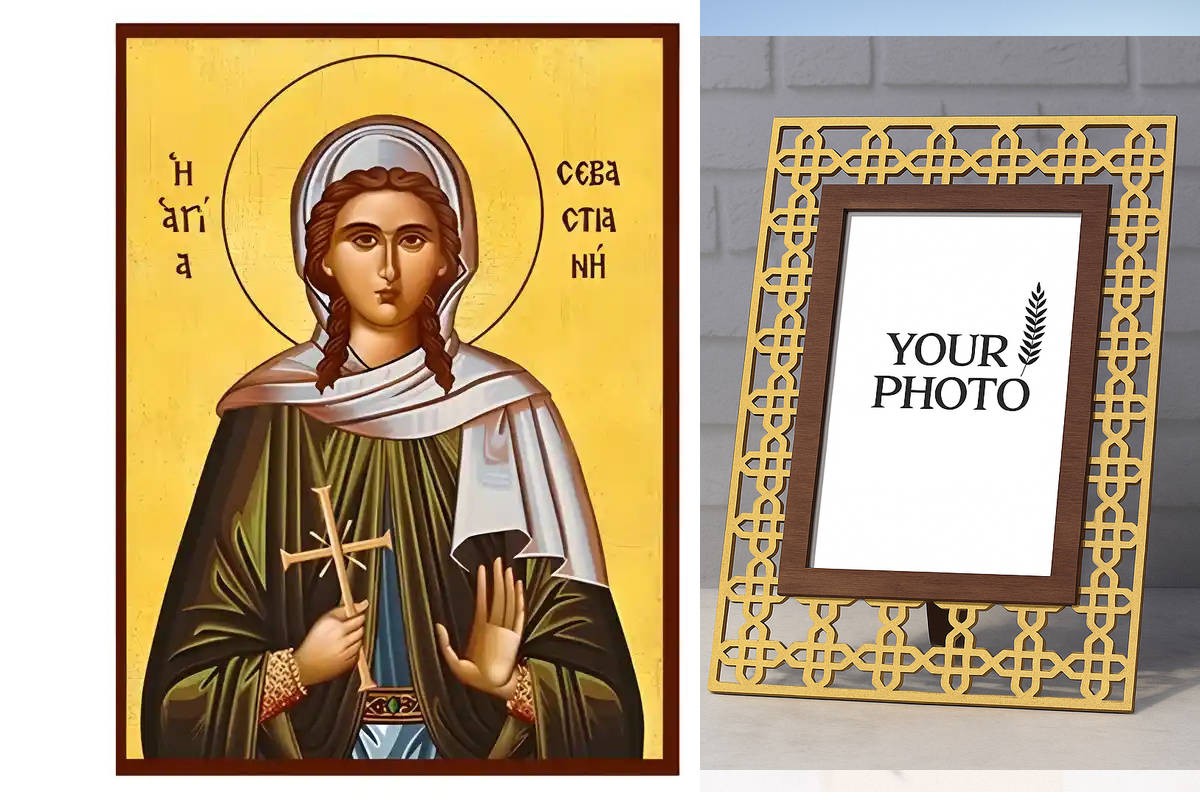 Βασικά Χαρακτηριστικά: - Σχέδιο: Κλασική βυζαντινή εικονογραφία με ζωηρό κόκκινο περίγραμμα - Υλικό: Ξύλο Μασίφ Φλαμουρία υψηλής αντοχής με προστατευτικό βερνίκι για ποιότητα που διαρκεί - Προέλευση: Χειροποίητο στην Ελλάδα - Σκοπός: Ιδανικό για γωνιές προσευχής, εκκλησίες, διακόσμηση σπιτιού ή ως δώρο με νόημα Διαθέσιμα μεγέθη: 10x7 cm (3,9 x 2,8 ίντσες) 15x11 cm (5,9 x 4,3 ίντσες) 21x15 cm (8,3 x 5,9 ίντσες) 26x20 cm (10,2 x 7,9 ίντσες) 40x30 cm (15,8 x 11,8 ίντσες) 45x35 cm (17,7 x 13,8 ίντσες) 50x40 cm (19,7 x 15,8 ίντσες)► Εικόνα της Αγίας Σεβαστιανής, ξύλινη.  Χειροποίητη ξύλινη εικόνα, ειδικής επεξεργασίας  σε σκληρό Φλαμουριά Ξύλο Εικόνα Ορθόδοξης τέχνης, σκαλισμένη ή τυπωμένη σε ξύλο φλαμουριάς υψηλής ποιότητας. Η φυσική απαλότητα και ομοιομορφία του ξύλου τονίζει κάθε λεπτομέρεια του εικονίσματος, αναδεικνύοντας τη βαθιά πνευματικότητα και την ιερότητα της παράδοσης. Ιδανική για οικιακό εικονοστάσι, δώρο βάπτισης, γάμου ή αφιέρωμα σε ναό. Το ξύλο έχει υποστεί ειδική επεξεργ